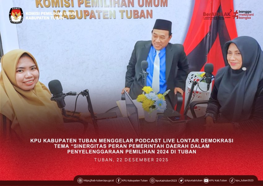 Tuban, kab-tuban.kpu.go.ig - Podcast Lontar Demokrasi episode kali ini mengangkat tema “Sinergitas Peran Pemerintah Daerah dalam Penyelenggaraan Pemilihan 2024 di Tuban” dan telah ditayangkan secara live melalui kanal YouTube KPU Kabupaten Tuban pada Senin (22/12/2025). Hadir sebagai narasumber: - Yudi Irwanto, Kepala Badan Kesatuan Bangsa dan Politik (BAKESBANGPOL) Kabupaten Tuban - Endang Sri Arti Rahayu, Sekretaris KPU Kabupaten Tuban Dipandu oleh Saila Amaliya selaku host, podcast ini mengulas sinergi KPU dan Pemda Tuban yang berjalan dengan baik, mulai dari proses pengajuan dana hibah Pilkada 2024 hingga penandatanganan NPHD yang berlangsung tanpa kendala. BAKESBANGPOL tidak hanya memfasilitasi penganggaran dana hibah, tetapi juga mendukung penyediaan gedung kantor serta gudang KPU Kabupaten Tuban, serta melaksanakan pendidikan pemilih di 20 kecamatan se-Kabupaten Tuban. Selain itu, BAKESBANGPOL juga mengajak pemilih untuk hadir dan memberikan suaranya di TPS, serta memberikan edukasi kepada masyarakat agar memilih Calon Bupati dan Wakil Bupati sesuai dengan hati nurani, dengan mempertimbangkan rekam jejak para calon. Kesuksesan Pilkada 2024 merupakan hasil kerja bersama, tidak hanya KPU dan BAKESBANGPOL, tetapi juga seluruh pemangku kepentingan serta partisipasi aktif masyarakat Kabupaten Tuban. (humas) ....