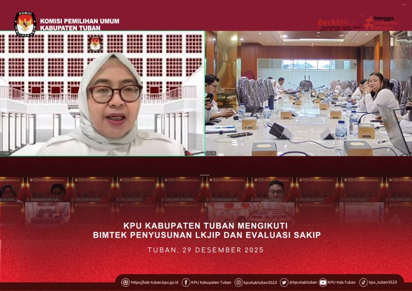 Tuban, kab-tuban.kpu.go.ig - Sub Bagian Perencanaan Data dan Informasi - KPU Kabupaten Tuban mengikuti kegiatan Bimbingan Teknis Penyusunan Laporan Kinerja Instansi Pemerintah Tahun 2025 dan Evaluasi Sistem Akuntabilitas Kinerja Instansi Pemerintah oleh KPU Republik Indonesia secara daring, Senin (29/12/2025), mulai pukul 09.00 WIB sampai selesai. Tujuan dari kegiatan ini adalah untuk meningkatkan kualitas penyusunan laporan kinerja tahun 2025 yang batas waktunya awal tahun 2026. "Pimpinan KPU berkomitmen untuk memberikan perhatian lebih baik pada kualitas laporan kinerja tahun 2025 sebagai bentuk perwujudan usaha meningkatkan kualitas kinerja Lembaga sekaligus mengukur efektivitas, efisiensi, dan akuntabilitas kinerja KPU RI dan seluruh satuan kerjanya," tegas Yayu Yuliani selaku Kepala Biro Keuangan dan Barang Milik Negara, dalam sambutannya di awal acara. Hadir sebagai pemateri Utama dari Kementerian Pendayagunaan Aparatur Negara dan Reformasi Birokrasi, Dwi Slamet, menyampaikan tentang Sistem Akuntabilitas Kinerja Instansi Pemerintah (SAKIP) beserta pengolahan data dan evaluasi kinerja. Narasumber kedua dari Badan Pengawasan Keuangan dan Pembangunan, Aldisa Agung Prasetyo, menyampaikan tentang tata cara reviu laporan kinerja dan substansi dan problematika kinerja instansi pemerintah. Para peserta sangat antusias dengan kegiatan ini dengan beberapa pertanyaan terkait penyusunan perjanjian kinerja dan laporan kinerja sekaligus persoalan-persoalan terkait hal itu. Harapannya bahwa KPU dan jajarannya makin memahami cara meningkatkan kualitas SAKIP yang beberapa di antaranya adalah meningkatkan kualitas Perjanjian Kinerja dan Laporan Kinerja Tahunan. (dy/hupmas) ....