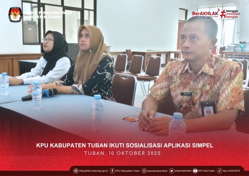 Tuban, kab-tuban.kpu.go.ig - Jumat (10/10/2025), KPU Kabupaten Tuban mengikuti kegiatan Sosialisasi Aplikasi SIMPEL (Sistem Informasi Manajemen Pelatihan) secara daring.