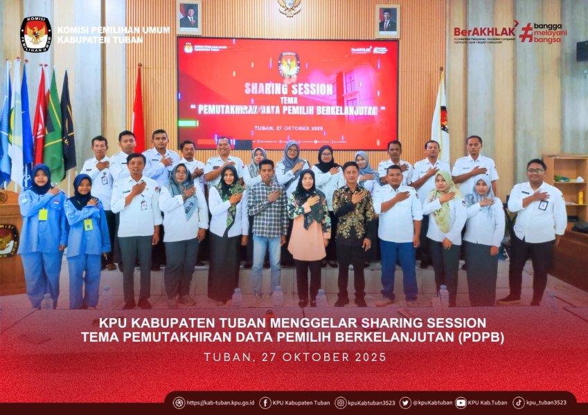 Tuban, kab-tuban.kpu.go.ig - Komisi Pemilihan Umum (KPU) Kabupaten Tuban menggelar kegiatan sharing session dengan tema “Pemutakhiran Data Pemilih Berkelanjutan (PDPB)”, pada Senin (27/10/2025).