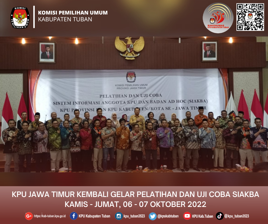 Batu, kab-tuban.kpu.go.id - Komisi Pemilihan Umum (KPU) Provinsi Jawa Timur kembali menggelar Pelatihan dan Uji Coba Sistem Informasi Anggota KPU dan Badan Ad Hoc (SIAKBA) bersama dengan 38 KPU kabupaten dan kota Se-Jawa Timur.