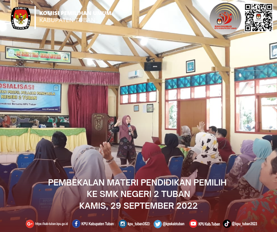 Tuban, kab-tuban.kpu.go.id - Bertempat di Aula SMKN 2 Tuban, Jl. Prof. Moh. Yamin, SH No.106, Kebonsari, Tuban sekitar 55 orang hadir dalam kegiatan Projects Penguatan Profil Pelajar Pancasila (P5).