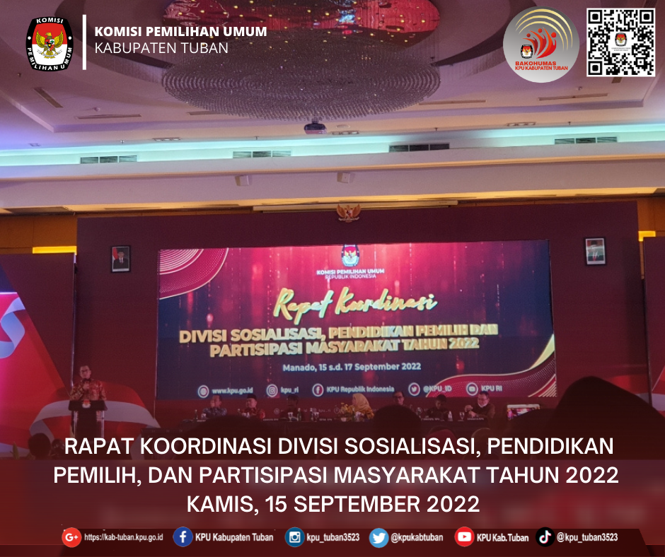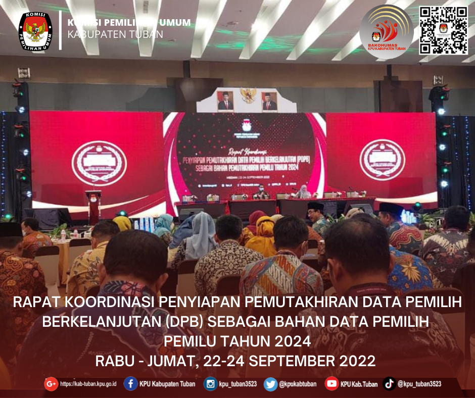 Medan, kab-tuban.kpu.go.id - Kamis malam (22/09/2022), 1097 peserta menghadiri Rapat Koordinasi Penyiapan Pemutakhiran Data Pemilih Berkelanjutan (DPB) Sebagai Bahan Data Pemilih Pemilu Tahun 2024 di Santika Premiere Dyandra, Jalan Kapten Maulana Lubis No 7, Medan, Sumatera Utara.