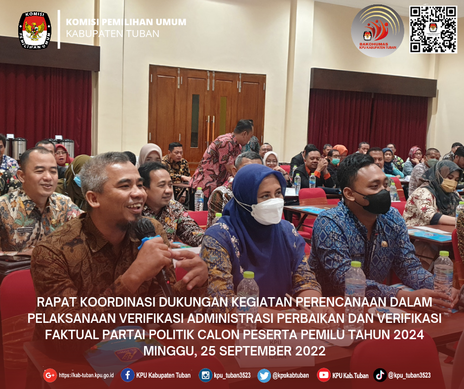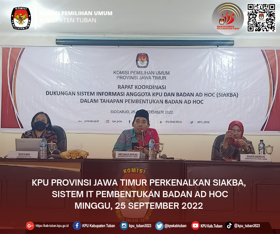 Hadir mewakili KPU Kabupaten Tuban, Divisi Perencanaan Data dan Informasi, Moh. Nurokhib dan Kasubbag Perencanaan, Data, dan Informasi yang diwakili, Saila Amaliya.