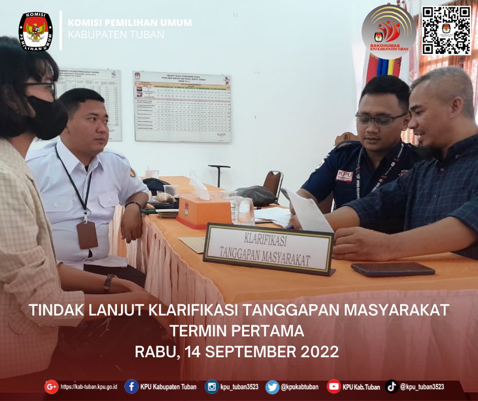 Hadir perwakilan dari KPU Kabupaten Tuban sebagai peserta undangan, Ketua KPU Kabupaten Tuban, Fatkul Iksan, Divisi Teknis Penyelenggaraan, Nur Hakim, Divisi Hukum dan Pengawasan, Kasmuri, Kasubbag Teknis Penyelenggaraan Pemilu Partisipasi, dan Hubungan Masyarakat, Endang Sri Arti Rahayu, serta Admin Sipol, Mohammad Ali Fikri.