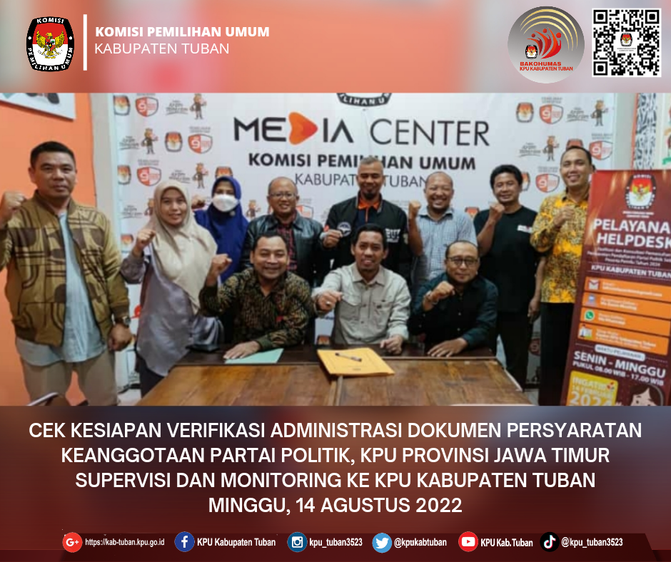 Bertindak sebagai Inspektur Upacara adalah Ketua KPU Kabupaten Tuban, Fatkul Iksan. Sementara Petugas Upacara yang ditunjuk sebagai Pemimpin Upacara, Parno Wibowo, Pengibar Bendera, Aditya Gilang P., M. Ali Fikri, dan Rizqi Surya Perdana, Ajudan, Rahmat Fu'adi, Pembaca Pembukaan UUD 1945, Pembawa Acara (MC), Fitri Maharani Yudhita, dan Pembaca Doa, Muhamad Nur.