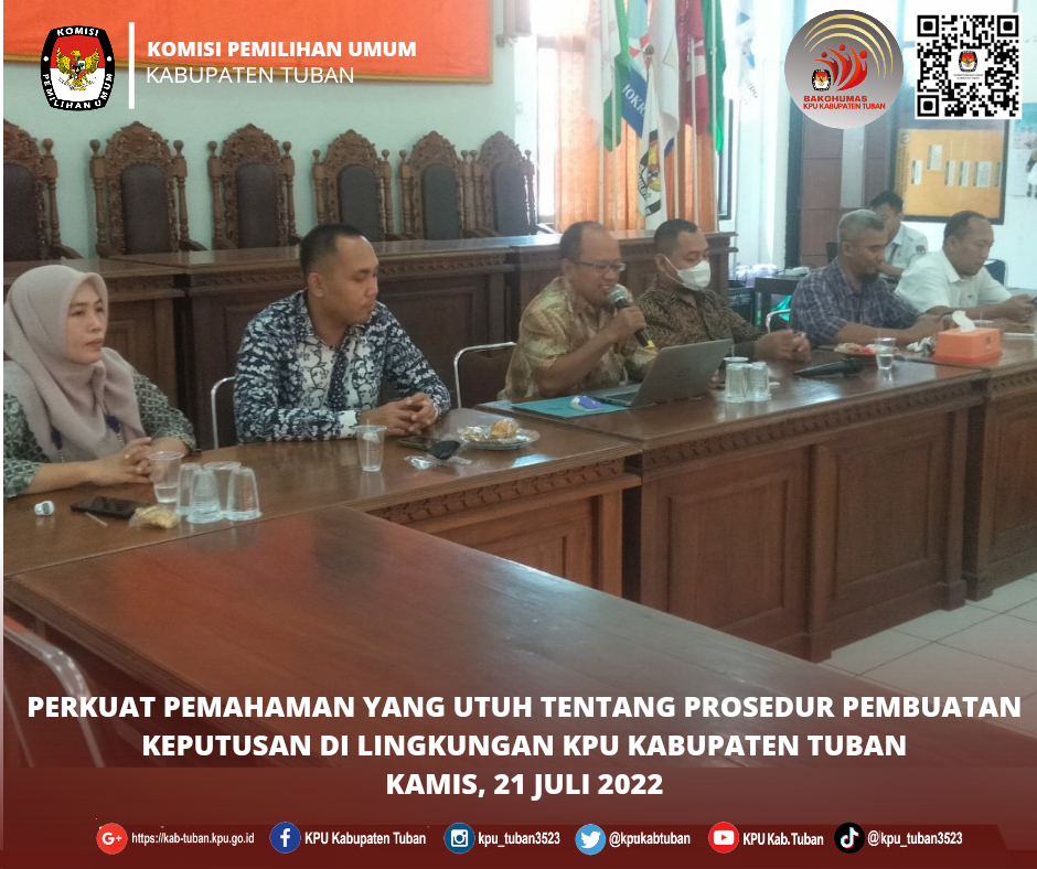 Hadir mewakili KPU Kabupaten Tuban dalam Rakor yang dimulai pukul 19.00 WIB ini adalah Kepala Subbagian Rendatin, Fitri Maharani Yudhita bersama seluruh Kasubbag Rendatin pada satker KPU RI se-Indonesia.