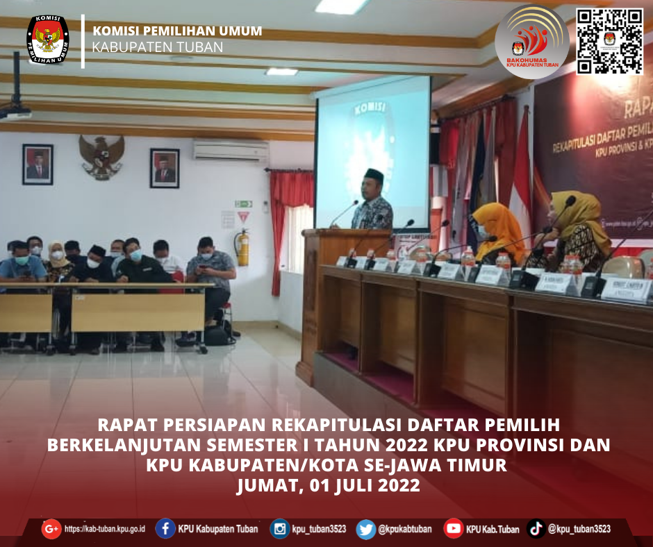 Tuban, kab-tuban.kpu go.id - Jumat (01/07/2022), tepat pukul 09.30 WIB di Aula KPU Provinsi Jawa Timur, Jalan Raya Tenggilis Nomor 1 - 3, Surabaya, Divisi Perencanaan, Data, dan Informasi (Rendatin), Moh. Nurokhib, Kepala Subbagian, Fitri Maharani Yudhita ,dan Operator Aplikasi Sidalih, Saila Amaliya menghadiri undangan Rapat Persiapan dan Rapat Koordinasi Daftar Pemilih Berkelanjutan Semester I Tahun 2022. Kabag Rendatin KPU Provinsi Jawa Timur, Nurita Paramita dalam laporannya menjelaskan bahwa kegiatan ini untuk memastikan kesiapan Tim Rendatin KPU Kabupaten/Kota se-Jawa Timur agar tidak ada permalasahan yang signifikan terkait data Pemilih. Selain itu juga untuk sarana evaluasi kegiatan Rapat Rekapitulasi Pemutakhiran Daftar Pemilih Berkelanjutan Triwulan II yang telah dilaksanakan oleh masing-masing KPU Kabupaten/Kota. Ketua KPU Provinsi Jawa Timur, Choirul Anam dalam sambutannya menegaskan bahwa dalam penyajian data Pemilih harus mempertimbangkan efek secara eksternal dengan kondisi data akurat dan normal karena kegiatan mutarlih (pemutakhiran data Pemilih) sangat terkait dengan stakeholder lainnya. "Data Pemilih normal itu artinya dinamis atau ada penambahan atau pengurangan dan pasti tidak stagnan," tegas pria yang biasa disapa Pak Anam ini. Permasalahan utama yang banyak dihadapi dalam mutarlih yaitu warga yang enggan mengubah status. Misalnya dari Anggota TNI/Polri aktif lalu berubah status menjadi purnawirawan. "Mereka enggan mengurus perubahan data perubahan status padahal dari institusinya sudah dilaporkan berstatus purnawirawan," jelasnya. Nurul Amalia, Ketua Divisi Rendatin KPU Provinsi Jawa Timur, mengingatkan kepada seluruh Komisioner Divisi Rendatin agar pandai menjaga hubungan baik dengan stakeholder lainnya. Karena pekerjaan mutarlih ini tidak mungkin dikerjakan oleh KPU sendiri. Kegiatan di Aula ini berlangsung sampai Sabtu (02/07/2022). Dengan agenda Rapat yang diikuti para Komisioner dengan stakeholder yang diundang oleh KPU Provinsi Jawa Timur. Sementara itu, Kasubbag Rendatin dan Operator Sidalih akan melakukan tugas lain di Ruang Media Center. (dy/humas)