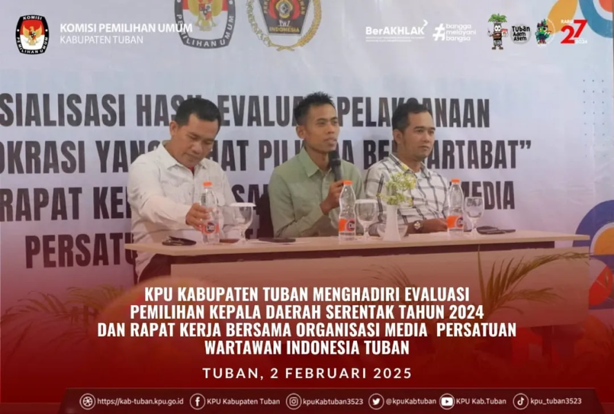 Tuban, kab-tuban.kpu.go.id – Minggu (2/2/2025) KPU Kabupaten Tuban Menghadiri Rapat Evaluasi Pilkada Serentak 2024 dengan Organisasi Media Persatuan Wartawan Indonesia Tuban.