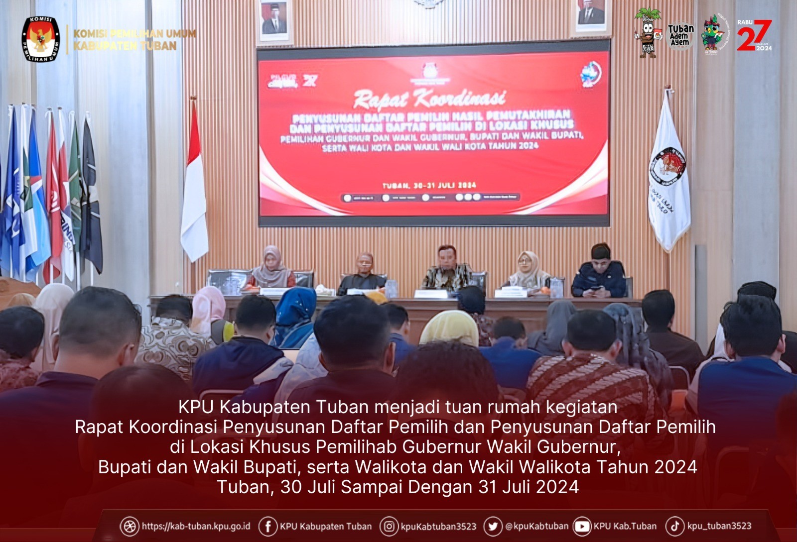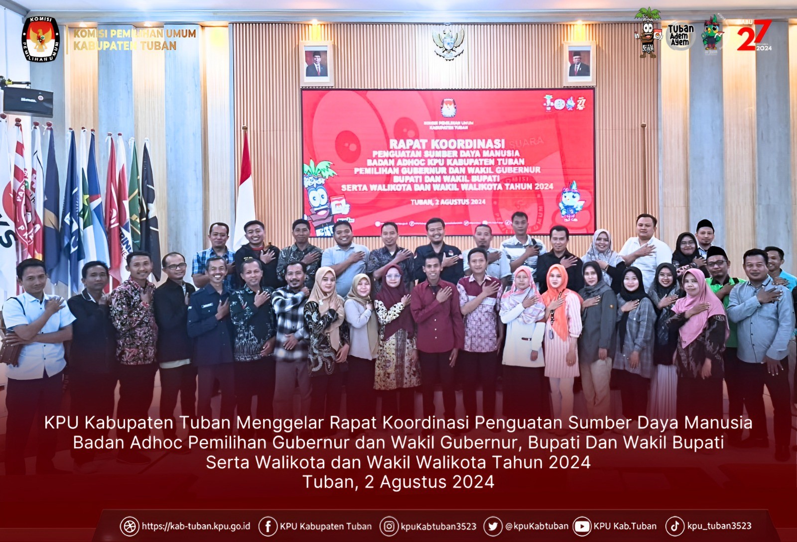 Tuban, kab-tuban.kpu.go.id - Jumat (2/8/2024 ) KPU Kabupaten Tuban menggelar Rapat Koordinasi (Rakor) Penguatan Sumber Daya Manusia Badan Adhoc KPU Kabupaten Tuban Pilkada Serentak 2024. Acara dilaksanakan di Aula Lantai 2 Kantor KPU Kabupaten Tuban, dimulai pukul 13.00 WIB dan diikuti oleh Ketua Panitia Pemilihan Kecamatan (PPK) dan Anggota PPK Divisi Sosdiklih, Parmas, dan SDM. Tujuan dari kegiatan rapat koordinasi ini untuk penguatan SDM badan adhoc serta untuk mencari mekanisme peningkatkan partisipasi masyarakat yang masih rendah agar tidak terulang seperti Pilkada 2015 yang partisipasi masyarakatnya rendah. Acara dibuka oleh Anggota KPU Kabupaten Tuban yang membidangi Divisi Hukum dan Pengawasan, Agus Umar Faruq. "Teman-teman PPK dan tolong ingatkan teman-teman PPS untuk lebih peka terhadap masalah dan menata kembali niat awal menjadi badan adhoc. Agar di tengah jalan tidak goyah dalam menjalankan tugas dan kewajiban. Melalui forum ini saya berharap dapat me-recharge dan menguatkan niat kita kembali," jelasnya. Selanjutnya sambutan dari Anggota KPU Divisi Teknis, Saiful Anwar. "Semoga Pilkada tidak ada halangan suatu apapun," ujar Saiful. Sambutan terakhir sekaligus dilanjutkan materi dari anggota KPU Divisi Sosdiklih, Parmas, dan SDM, Gunawan Wihandono.