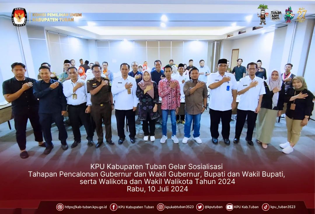 Tuban, kab-tuban.kpu.go.id - KPU Kabupaten Tuban mengadakan Sosialisasi Tahapan Pencalonan Gubernur dan Wakil Gubernur, Bupati dan Wakil Bupati, serta Walikota dan Wakil Walikota Tahun 2024.