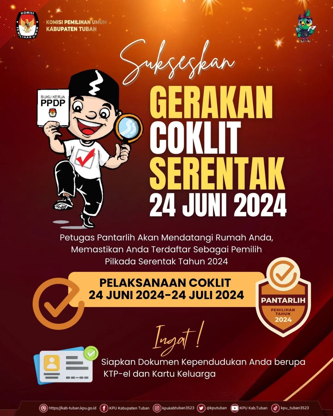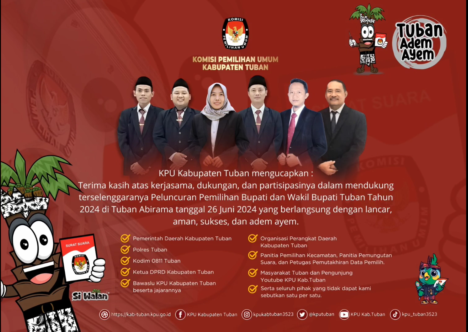 Acara ini dalam rangka konsolidasi dengan stakeholder dan/atau instansi terkait untuk membangun sinergitas kelancaran pelaksanaan Peluncuran Pemilihan Bupati dan Wakil Bupati Tuban Tahun 2024 yang rencananya akan diselenggarakan pada hari Rabu tanggal 26 Juni 2024.