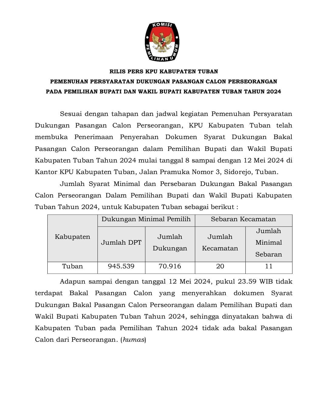 Sementara itu, gelombang kedua berlangsung di hari Minggu (12/5/2024) yang diikuti 8 (delapan) kecamatan yaitu Bangilan, Jatirogo, Kenduruan, Plumpang, Rengel, Soko, Tambakboyo dan Tuban.