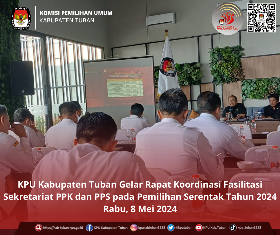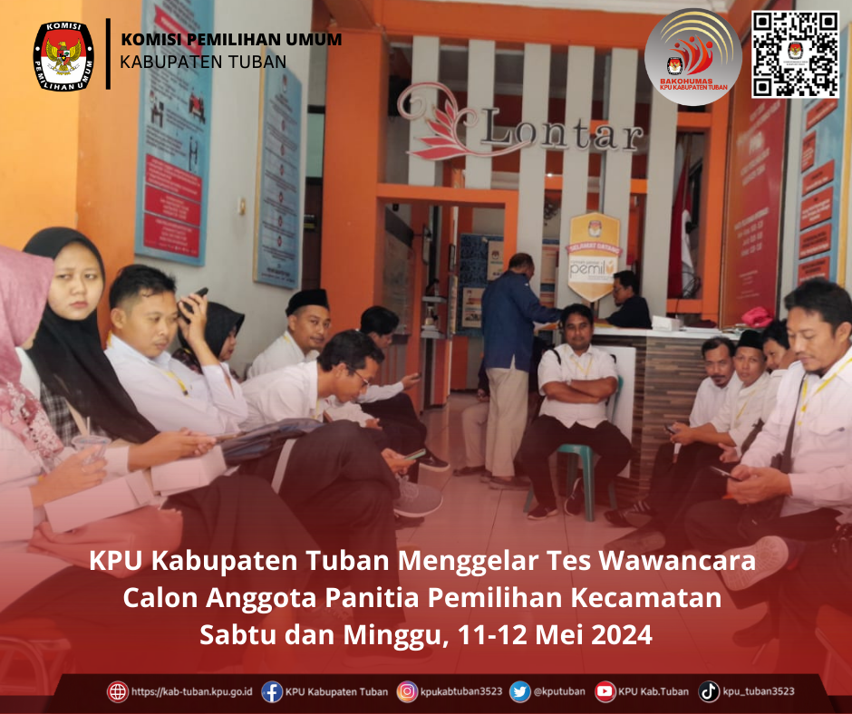 "KPU Kabupaten Tuban telah menjadwalkan selama 2 (hari) untuk melaksanakan Seleksi Wawancara Calon Anggota PPK dan pada tanggal 16 Mei 2024 adalah Jadwal Pelantikan Anggota PPK terpilih," jelas Divisi Sosialisasi, Pendidikan Pemilih, Partisipasi Masyarakat, dan SDM, Zakiyatul Munawaroh.