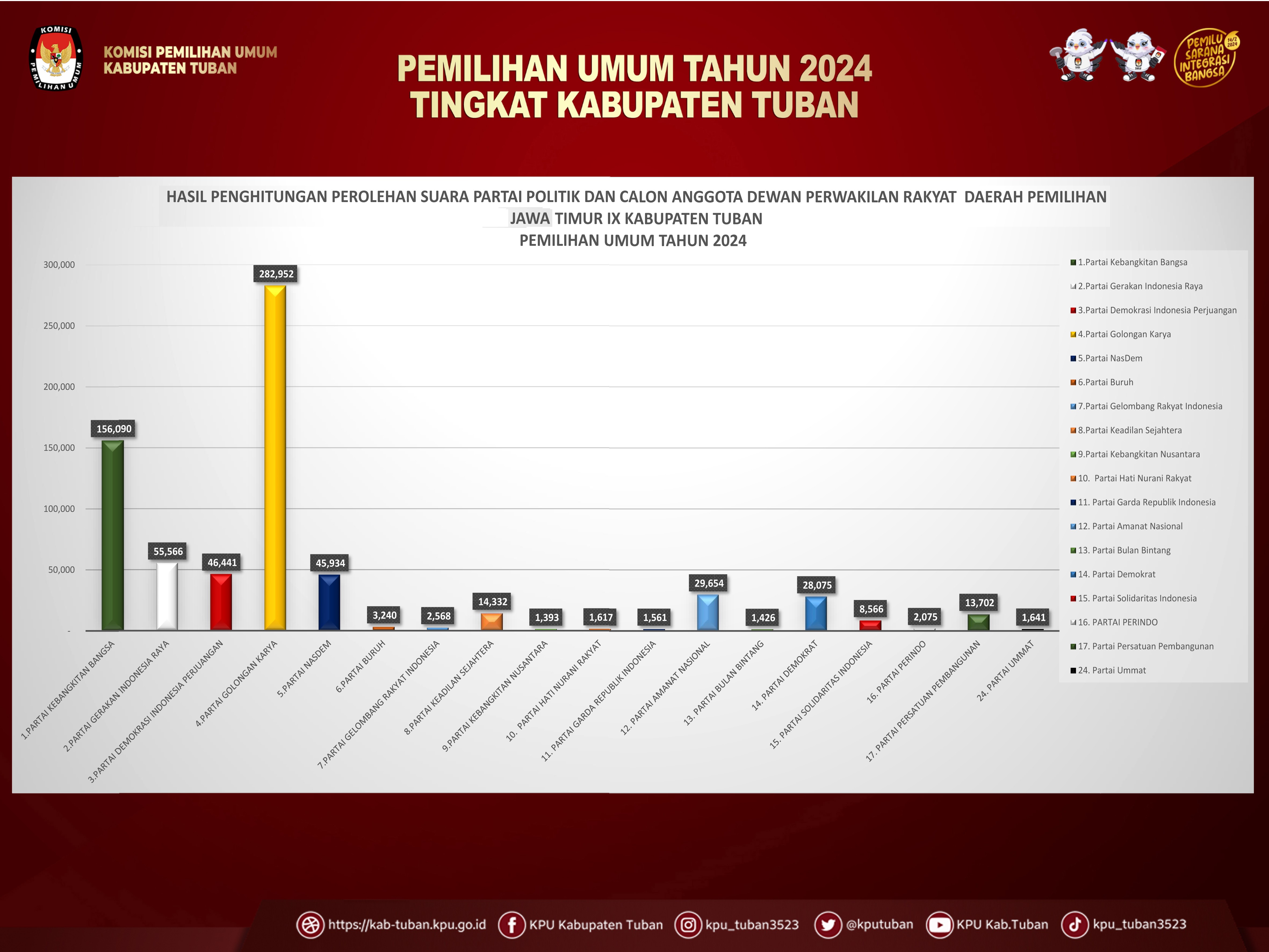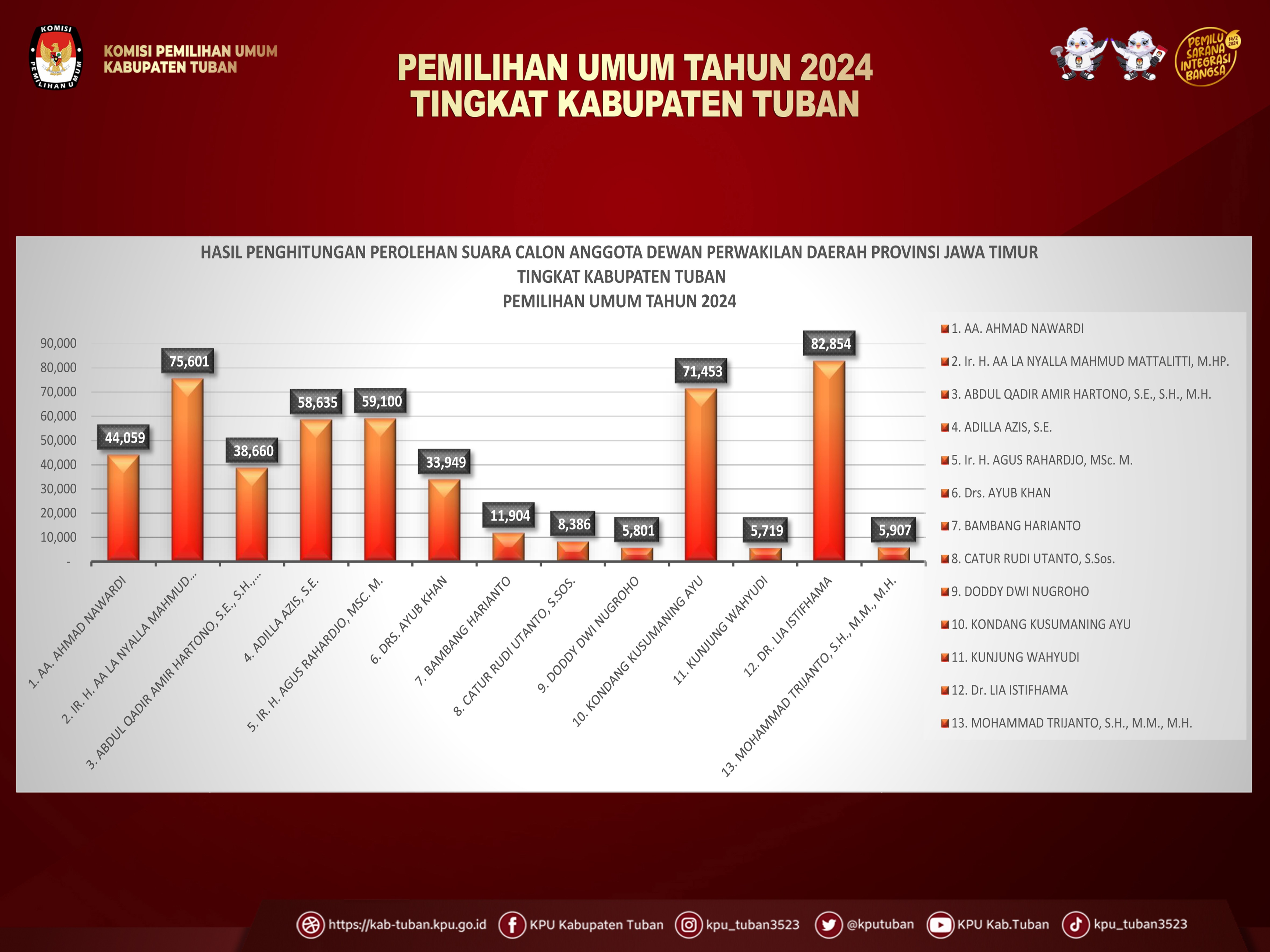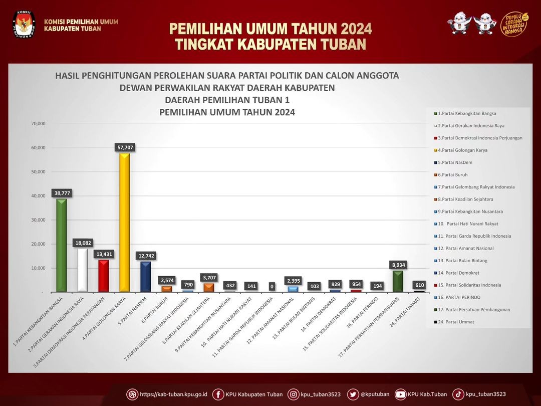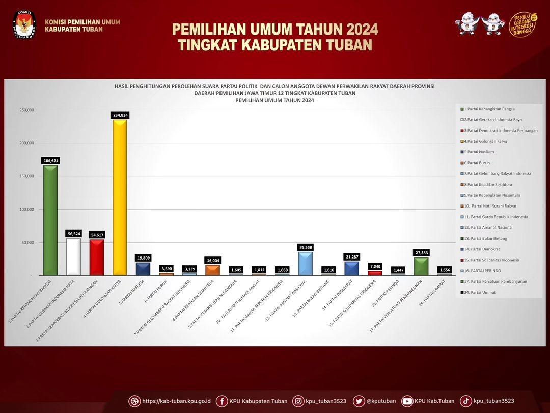 Hasil Penghitungan Perolehan Suara Partai Politik dan Calon Anggota Dewan Perwakilan Rakyat Daerah (DPRD) Provinsi di Daerah Pemilihan Jawa Timur 12 Kabupaten Tuban pada Pemilihan Umum Tahun 2024