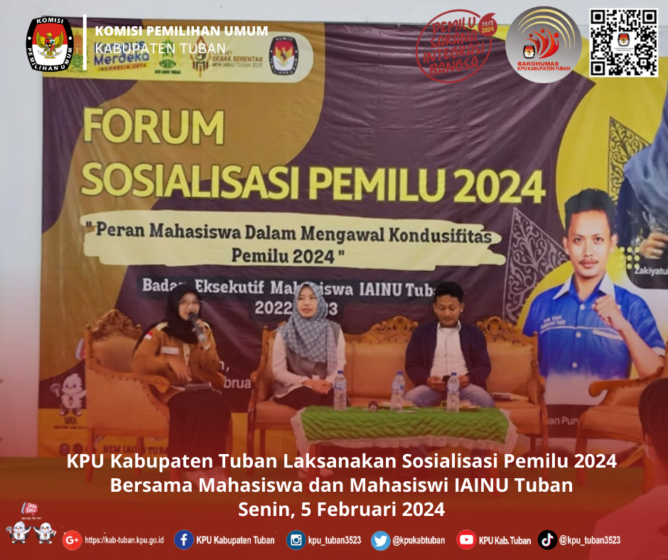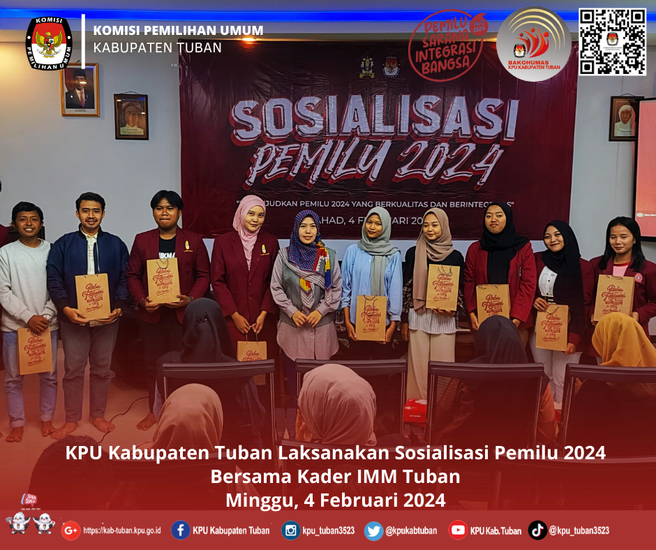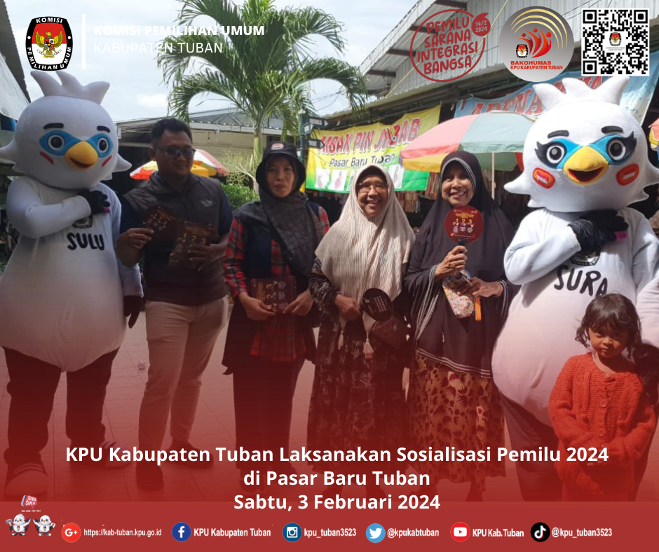 Tuban, kab-tuban.kpu.go.id - Sabtu (3/2/2024) bertempat di Pasar Baru Tuban, Jl. Gajahmada No.32, Kebonsari, Gedongombo, Kec. Semanding, Kabupaten Tuban telah diselenggarakan Sosialisasi Pemilu Tahun 2024.