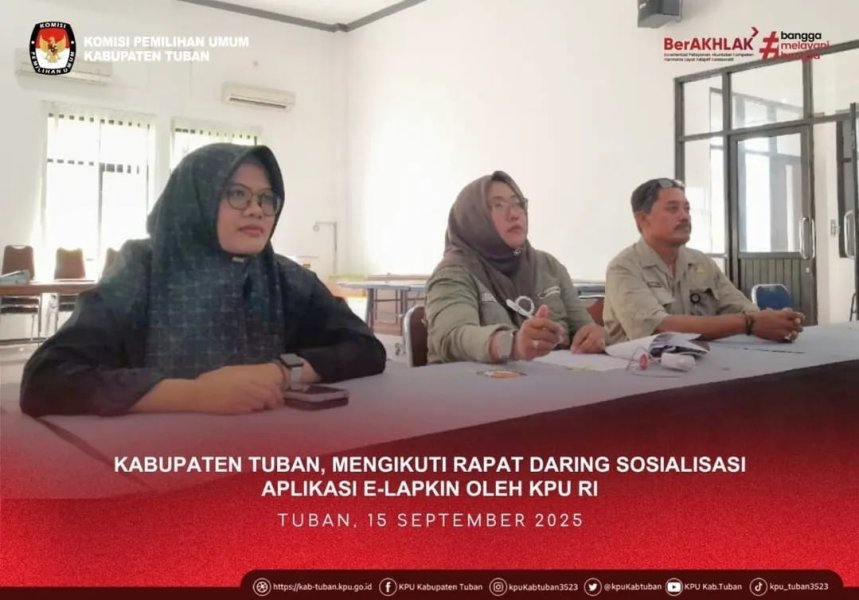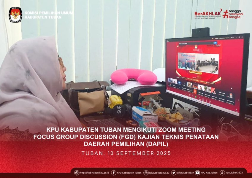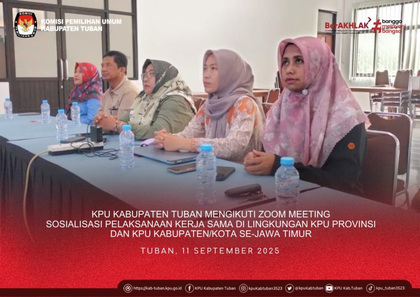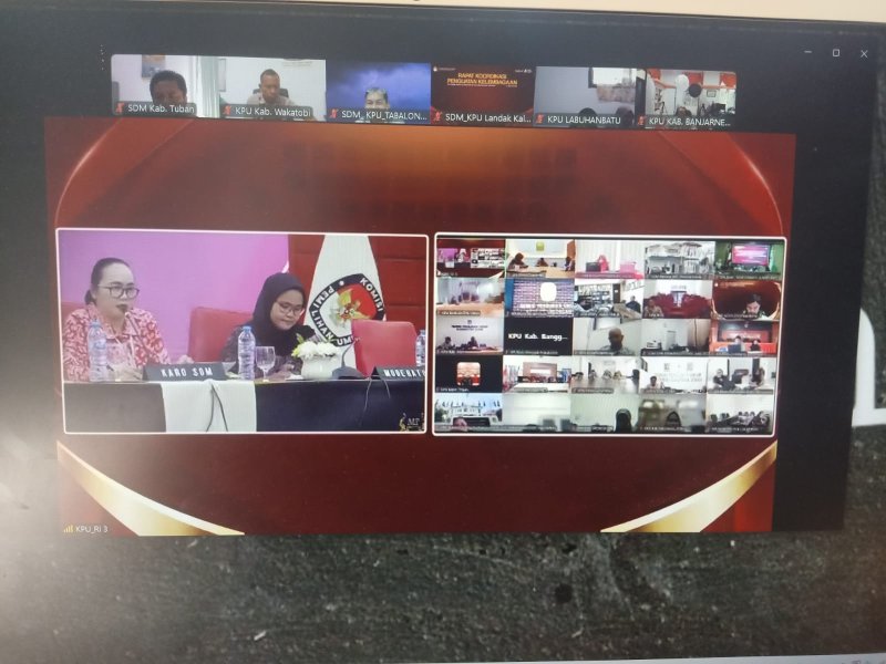 Tuban, kab-tuban.kpu.go.ig - KPU Kabupaten Tuban yang diwakili oleh Kasubbag serta Subbagian Parmas dan SDM secara daring mengikuti Rapat Konsolidasi Tata Kelola Layanan Kepegawaian dengan Badang Kepegawaian Negara (BKN) di Lingkungan Sekretariat Jenderal KPU Tahun 2025. Kegiatan diselenggarakan secara hybrid oleh KPU RI.