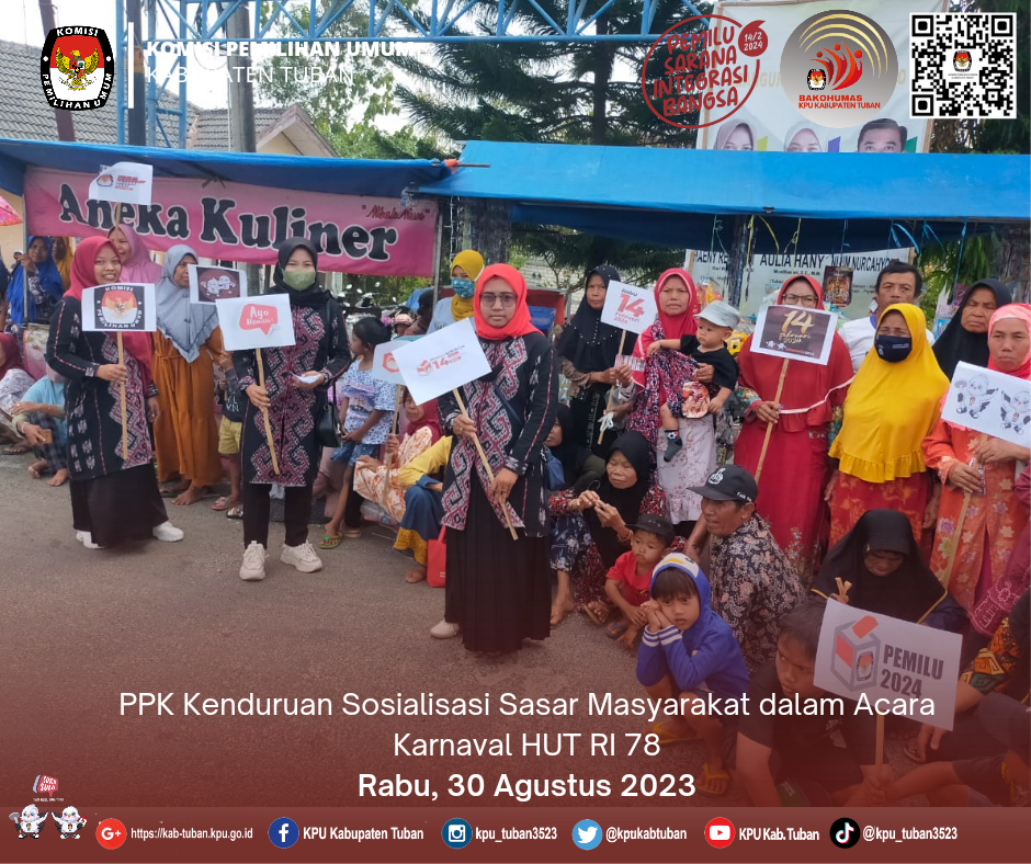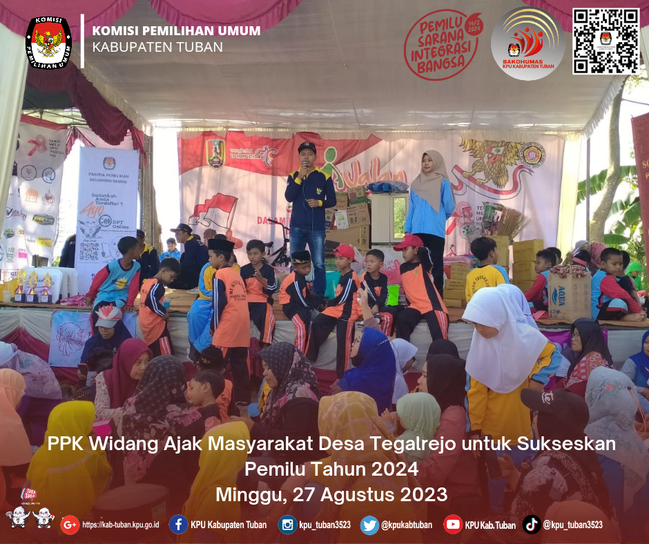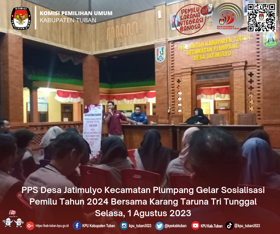 Tuban, kab-tuban.kpu.go.id - Anggota PPS Desa Jatimulyo Kecamatan Plumpang yang membidangi Divisi Sosialisasi, Parmas, dan SDM, M. Da’I Bachtiar menjadi keynote speaker dalam kegiatan sosialisasi yang menyasar Pemilih Pemula dengan tema “Sosialisasi dan Diskusi Pemilu Cermat”. Kegiatan yang diikuti sekitar 100 peserta ini digelar bersamaan dengan acara Musyawarah Panitia PHBN bersama Karang Taruna Tri Tunggal dan KKN dari UNMUH Surabaya yang bertempat di Balai Desa Jatimulyo, Plumpang, Selasa (1/8/2023). “Pentingnya peran seluruh masyarakat dalam pesta demokrasi adalah benar-benar mengetahui siapa yang akan kita pilih demi masa depan bangsa dan negara yang lebih baik, maka pilihlah dengan hati-hati dan jangan asal coblos agar tidak menyesal kedepannya," jelasnya. "Akan dikatakan sukses dalam Pemilu Serentak Tahun 2024 yaitu semua masyarakat menuju ke Tempat Pemungutan Suara (TPS) pada tanggal 14 Februari 2024 untuk memberikan hak suaranya,” ujarnya. Sosialisasi ini merupakan keempat kalinya yang dilaksanakan pada tahun 2023 di Desa Jatimulyo. "Sosialisasi ini sangat penting dilakukan karena melalui pesta demokrasi ini tentunya masyarakat menggunakan hak pilihnya untuk memilih pemimpin negara dan harapan terbesar kita adalah menciptakan suasana kebebasan berpolitik dengan menghindari pecah belah dan polarisasi politik identitas. Semoga kehadiran pemilih di Desa Jatimulyo bisa lebih meningkat lagi daripada Pemilu 2019," pungkasnya. (mfcr/humas)
