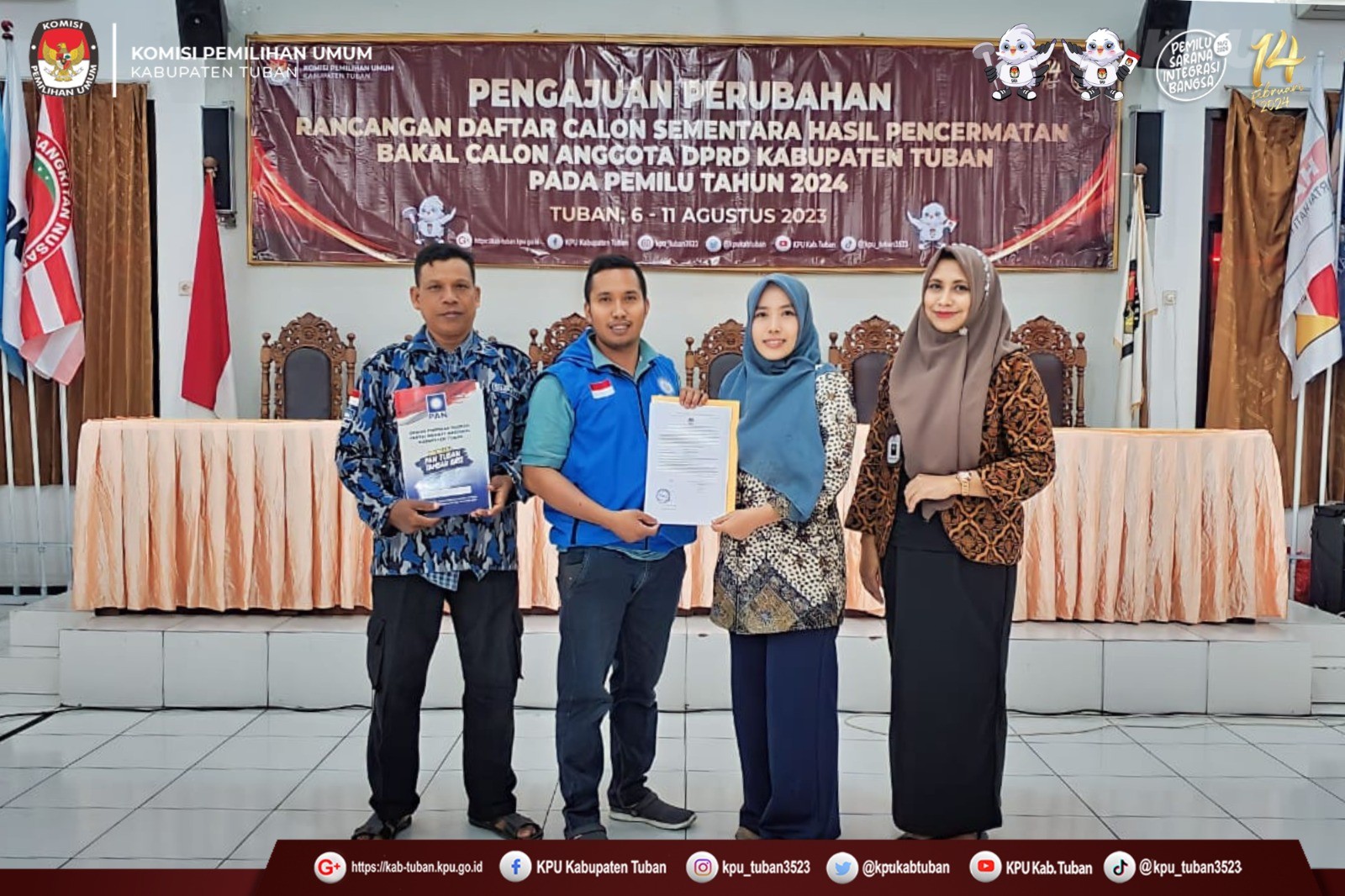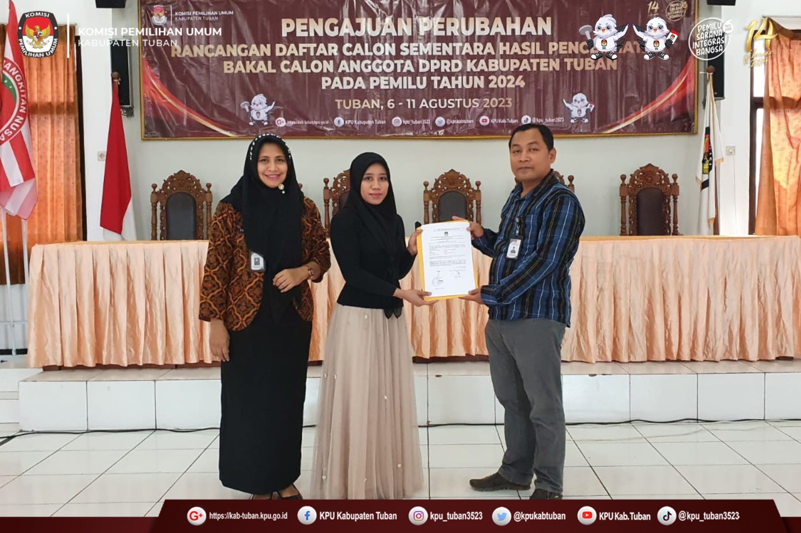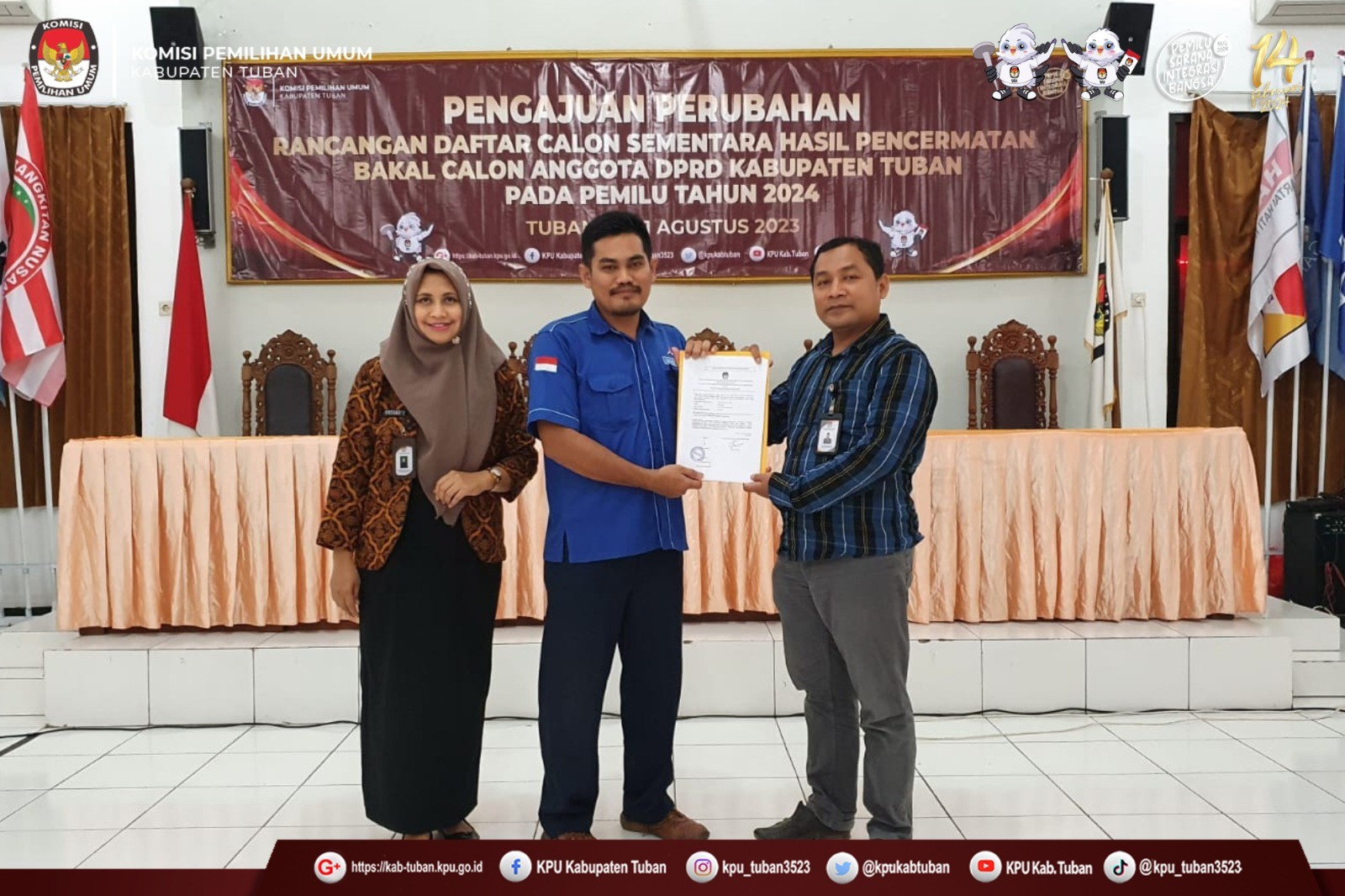 Tuban, kab-tuban.kpu.go.id - Jumat (11/8/2023), KPU Kabupaten Tuban menerima Pengajuan Perubahan Bakal Calon Anggota DPRD Kabupaten Tuban Pemilu Tahun 2024 pada Masa Pencermatan Rancangan Daftar Calon Sementara (DCS) dari Partai Demokrasi Indonesia Perjuangan (PDI Perjuangan). (humas)