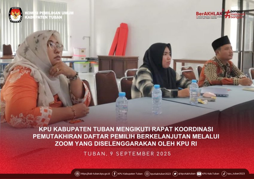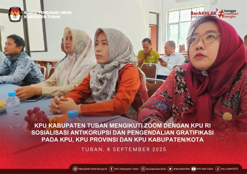 Tuban, kab-tuban.kpu.go.ig - Senin(8/9/2025) KPU Kabupaten Tuban mengikuti kegiatan "Sosialisasi Antikorupsi dan Pengendalian Gratifikasi pada KPU, KPU Provinsi dan KPU Kabupaten/Kota" secara daring melalui Zoom Meeting. Acara ini diikuti oleh Ketua, Anggota, Sekretaris dan Jajaran sekretariat di seluruh KPU KIP, Provinsi dan Kab/Kota se-Indonesia. Kegiatan ini bertujuan untuk memperkuat komitmen dan pemahaman seluruh jajaran KPU dalam upaya pencegahan korupsi dan pengendalian gratifikasi. Integritas penyelenggara adalah kunci terwujudnya pemilu yang jujur, adil, dan tepercaya. Dalam sambutannya, ketua KPU RI, Mochammad Afifuddin menyampaikan, "Setiap kewenangan dan kekuasaan yang besar, memiliki potensi korupsi yang besar juga. Untuk itu salah satu upaya KPU untuk mencegah timbulnya kemungkinan adanya korupsi dengan membangun sistem seperti sipol dan sebagainya." Pemateri dalam kegiatan ini adalah Deputi Bidang Pendidikan dan Peran Serta Masyarakat di Komisi Pemberantasan Korupsi, Wawan Wardiana. Dalam materinya, berbagai indikator menunjukkan bahwa integritas nasional masih rentan dan korupsi tetap menjadi ancaman serius bagi tata kelola pemerintahan. Korupsi termasuk dalam extraordinary crime karena dampak yang ditimbulkannya sangat besar. Sehingga beliau mengajak semua pihak untuk ikut andil dalam mewujudkan Wilayah Bebas Korupsi. KPU Kabupaten Tuban siap mewujudkan Zona Integritas dan menyelenggarakan pemilu yang bersih dari praktik korupsi. (humas)
