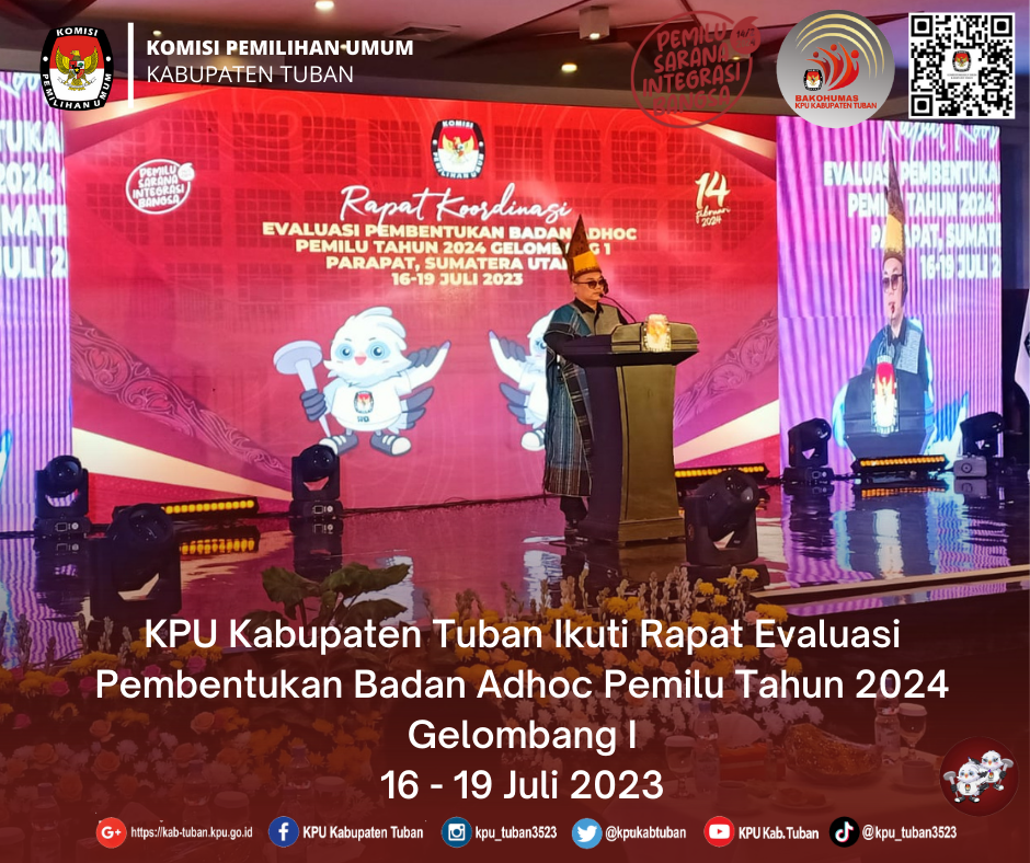 Tuban, kab-tuban.kpu.go.id - Perwakilan KPU Kabupaten Tuban ikuti Rapat Evaluasi Pembentukan Badan Adhoc Pemilu Tahun 2024 Gelombang I yang dilaksanakan di Hotel Niagara Parapat, Sumatera Utara. Kegiatan ini dihadiri oleh Divisi Sosdiklih, Parmas, dan SDM, Zakiyatul Munawaroh, Sekretaris, Mochamad Arifuddin, beserta Kasubbag Hukum dan SDM, Mochamad Sutaji. Rapat dibuka oleh Divisi Sumber Daya Manusia, Organisasi, Pendidikan dan Pelatihan dan Penelitian dan Pengembangan KPU RI, Parsadaan Harahap. Dalam sambutan pembukaan acara pria yang akrab dipanggil Pak Parsa ini menyampaikan bahwa evaluasi wajib dilakukan untuk melakukan penilaian dan pendalaman, serta kajian agar mendapatkan informasi yang aktual tentang situasi di daerah ketika proses pembentukan badan Adhoc dilakukan. Beliau juga mengapresiasi Aplikasi SIAKBA (Sistem Informasi Anggota KPU dan Badan Adhoc), dengan adanya aplikasi tersebut KPU RI memiliki data yang akurat tentang Badan Adhoc yang dimiliki KPU RI. "Evaluasi wajib dilakukan untuk melakukan penilaian dan pendalaman, serta kajian agar mendapatkan informasi yang aktual tentang situasi di daerah ketika proses pembentukan badan Adhoc dilakukan," ujarnya. "Saya juga mengapresiasi Aplikasi SIAKBA (Sistem Informasi Anggota KPU dan Badan Adhoc), dengan adanya aplikasi tersebut KPU RI memiliki data yang akurat tentang Badan Adhoc yang dimiliki KPU RI, pendataan dilakukan dengan sangat baik, termasuk PPLN di 128 negara perwakilan Indonesia. Saya juga berpesan untuk menjaga anggota Badan Ad Hoc yang telah terbentuk yakni PPK dan PPS sampai akhir Pemilu, dengan memaksimalkan Divisi Pengawasan internal melalui PKPU tata kerja, karena eskalasi Pemilu akan semakin meningkat," ujarnya kembali. (af/humas)