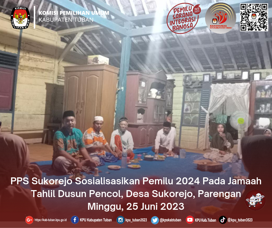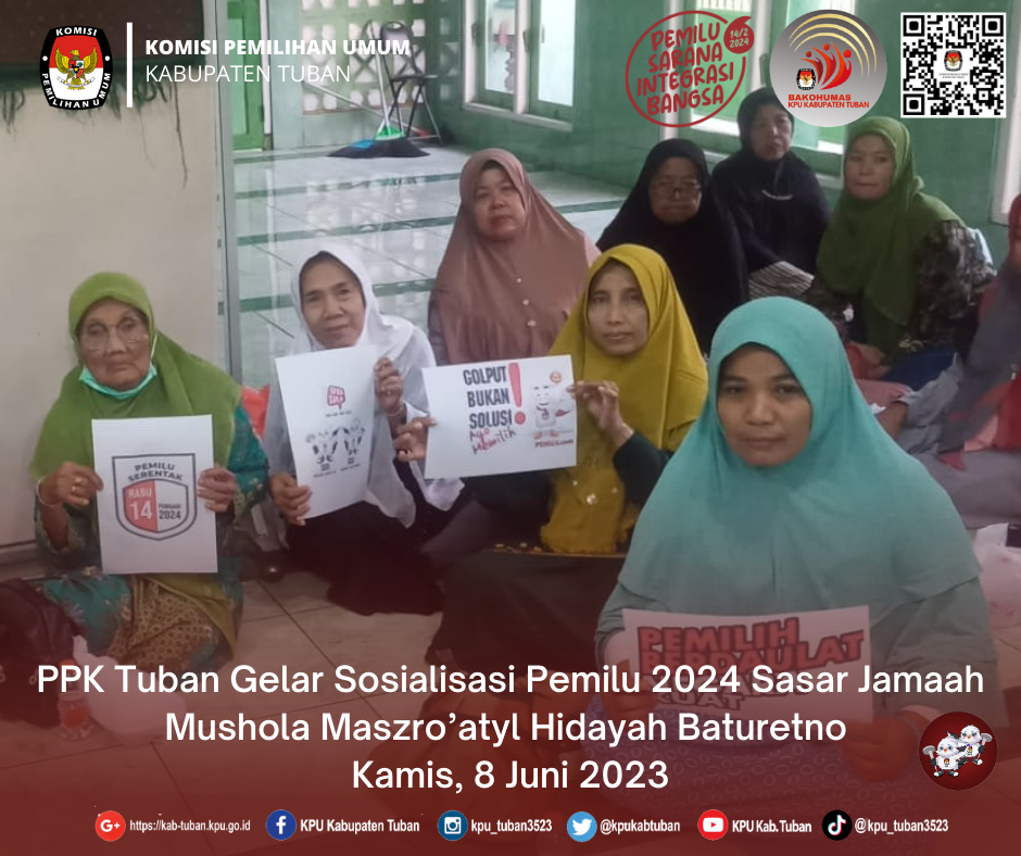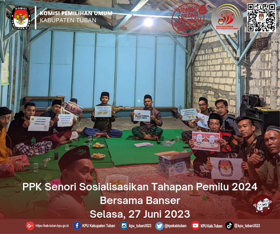 Tuban, kab-tuban.kpu.go.id -Kebersamaan anggota dalam pertemuan rutin di markas Banser di Kecamatan Senori nampak terasa pada tiap bulan. Namun kali ini berbeda pada Selasa malam (27/6/2023) di TPQ Baitul Hikam Jatisari, Senori, dalam pertemuan rutin kali ini ada satu agenda yang tak biasa yaitu, sosialisasi Pemilu 2024.