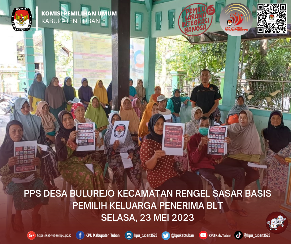 Tuban, kab-tuban.kpu.go.id - Panitia Pemungutan Suara (PPS) Desa Bulurejo Kecamatan Rengel melakukan sosialisasi Tahapan Pemilu 2024 dengan menyasar basis Pemilih Keluarga, Selasa (23/4/2023). Kegiatan yang dimulai pukul 08.00 WIB ini bertempat di Balai Desa Bulurejo bersamaan dengan agenda Pemerintahan Desa yaitu Penerimaan Bantuan Langsung Tunai (BLT). Dalam rangka menyukseskan kegiatan tersebut, sekitar 60 warga yang hadir pada saat itu turut menyimak dengan saksama dan tertib apa yang disampaikan oleh PPS. Ketua PPS Desa Bulurejo, Saiful Fadli mengatakan, pentingnya partisipasi warga dalam pemilu. "Kita harus ikut serta terlibat dalam pemilihan umum pada tanggal 14 Februari 2024 nanti dan kita juga harus menggunakan pilih dengan sebaik mungkin," jelasnya. Menurutnya, dengan tidak menggunakan hak pilihnya itu bukan solusi yang baik dan tak menyelesaikan masalah. "Karena golput bukan solusi," pungkas Saiful Fadli. Disamping itu, Saiful Fadli beserta anggota PPS Desa Bulurejo yang lain mengumumkan Daftar Pemilih Sementara Hasil Pemilihan (DPSHP) di Balai Desa Bulurejo, tujuannya adalah agar informasi lebih terpusat dan terjaga keamanannya. "Semua pengumuman berkaitan dengan tahapan pemilu kita pasang di balai desa, agar lebih terpusat informasinya dan terjaga keamanannya, selain itu juga kita lakukan sosialisasi kepada masyarakat secara terbuka," jelas Saiful Fadli. Dengan dilakukannya sosialisasi tahapan pemilu ini diharapkan agar masyarakat bisa berpartisipasi dalam Pemilu 2024 dan lebih aktif lagi datang ke balai desa untuk melihat informasi berkaitan dengan tahapan Pemilu 2024. (zlf/humas)