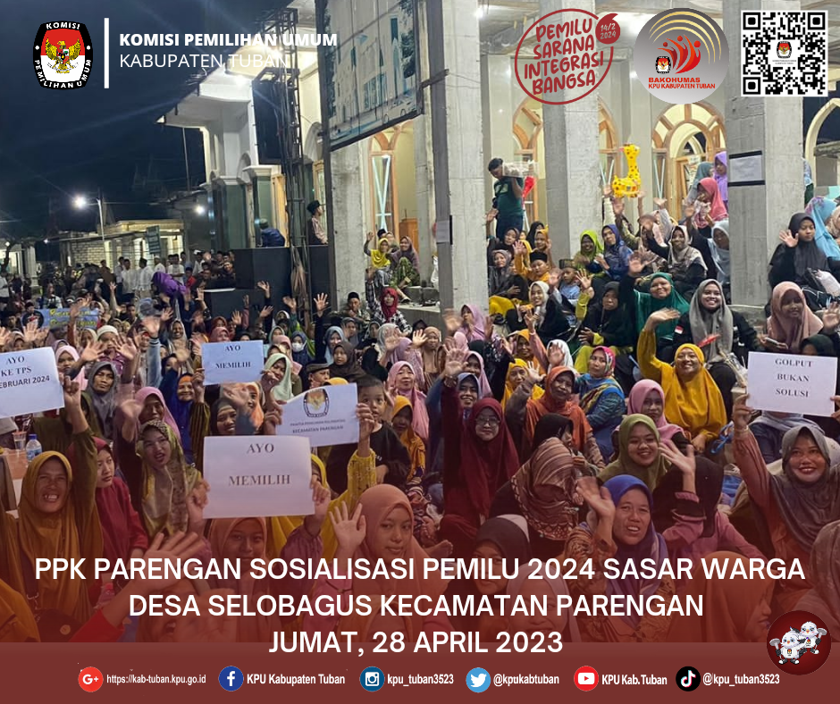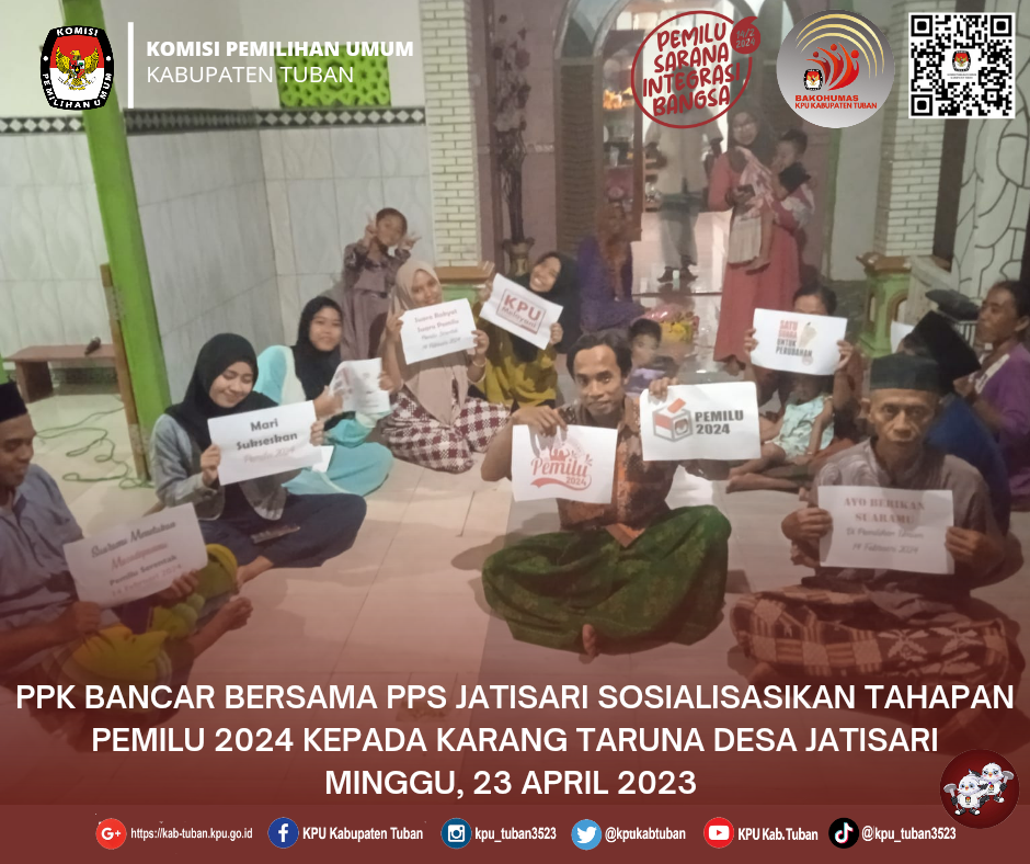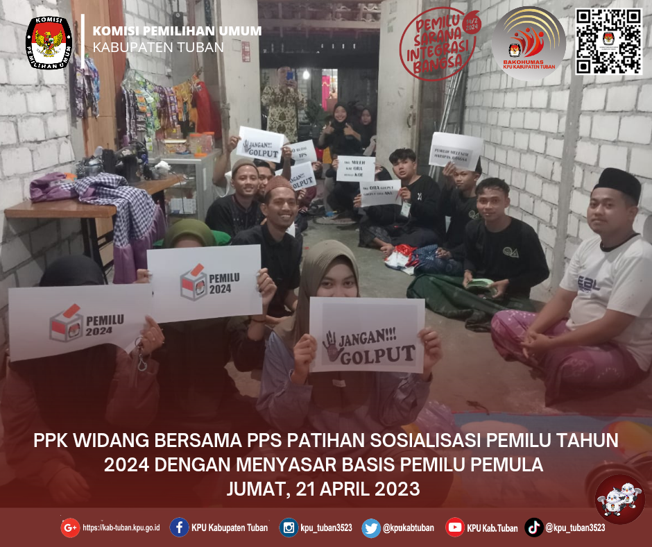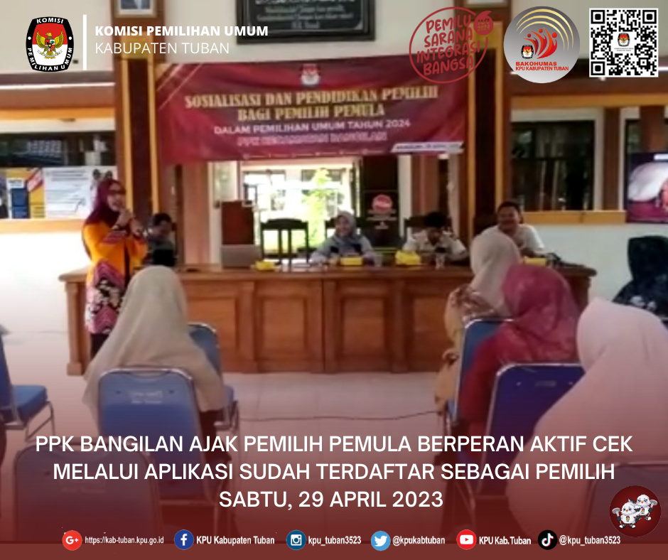 Tuban, kab-tuban.kpu.go.id - Sabtu (29/04/2023), dalam rangka memberikan pemahaman dan informasi kepada Pemilih Pemula untuk menggunakan hak pilihnya pada Pemilu dan Pemilihan Serentak tahun 2024, Panitia Pemilihan Kecamatan (PPK) Bangilan menyelenggrakan Sosialisasi dan Pendidikan Pemilih bagi Pemilih Pemula. Kegiatan yang dilaksanakan di Pendopo Kecamatan Bangilan tersebut diikuti oleh 60 peserta yang terdiri dari unsur pelajar dan aktivis organisasi kepemudaan yang notabenenya sebagai Pemilih Pemula. Divisi Sosdiklih, Parmas dan SDM PPK Kecamatan Bangilan, Sutingah menyampaikan kepada Pemilih Pemula untuk memastikan sudah terdaftar sebagai Pemilih dengan cek secara online melalui link https://cekdptonline.kpu.go.id/ atau manual pada Daftar Pemilih Sementara (DPS) yang diumumkan di wilayah masing-masing. Bagi Pemilih yang sudah memenuhi syarat namun belum masuk di DPS dapat menghubungi Penyelenggara ditingkat desa. Selama materi sosialisasi disampaikan peserta tampak antusias, hal ini ditunjukkan dengan adanya diskusi dan tanya jawab disela-sela sosialisasi berlangsung. Turut hadir juga Panwascam Bangilan, Ahmad Heru Wahyudi yang mengingatkan kepada Pemilih tentang pencegahan money politic. Dengan adanya sinergitas antar Penyelenggara dalam memberikan sosialisasi diharapkan dapat meningkatkan partisipasi masyarakat untuk menggunakan hak pilih serta mencegah terjadinya pelanggaran pada Pemilu 2024. (suti/humas)
