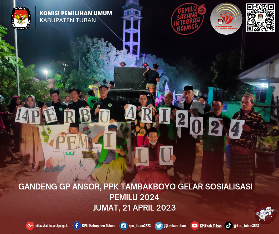 Tuban, kab-tuban.kpu.go.id - Dalam rangkaian sosialisasi Pemilu 2024, Panitia Pemilihan Kecamatan (PPK) Tambakboyo menggandeng Pengurus Ranting GP Ansor Desa Sawir yang bertepatan dengan acara pelaksanaan Gema Takbir Keliling di jalanan Desa Sawir, Jumat (21/04/2023). Dalam acara tersebut, diikuti kurang lebih oleh 300 peserta yang terdiri dari beberapa lembaga dan komunitas, diantaranya adalah Pengurus Ranting GP Ansor Desa Sawir, Gabungan TPQ Desa Sawir, dan Pagar Nusa Ranting Desa Sawir. Nurul Mubtadiin, Anggota PPK Tambakboyo yang membidangi Divisi Sosdiklih, Pamas, dan SDM menjelaskan, bahwa masyarakat berhak mendapatkan edukasi atau sosialisasi agar mau menggunakan hak pilihnya. "Kami dari PPK Tambakboyo, tentunya akan bekerja semaksimal mungkin agar masyarakat dapat tercerahkan dan mau menggunakan hak pilihnya. Oleh karenanya, jika sosialisasi dilakukan secara maksimal, maka kami yakin dapat meminimalisir tingkat golput di masyarakat," papar Kang Diin, panggilan akrabnya. Hal senada juga disampaikan oleh Ketua panitia acara Gema Takbir Keliling, Syariful Anam yang berharap agar masyarakat tidak skeptis dengan pesta politik lima tahunan. "Saya selaku Pimpinan Ranting GP Ansor Desa Sawir berharap masyarakat antusias dengan adanya sosialisasi yang diselenggarakan oleh PPK Tambakboyo. Pada Pemilu 2024 nanti, kami berharap bisa mendapatkan pemimpin yang menjadikan Indonesia menjadi negeri yang Baldatun Thoyyibatun wa Robbun Ghofur," tukas Syariful. Seperti diketahui, dalam acara sosialisasi tersebut, masyatakat memberikan respon yang positif kepada PPK Tambakboyo beserta jajaran. (nun/humas)