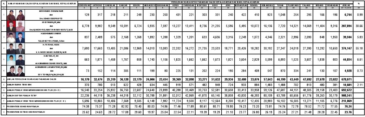 INFO PEMILIHAN 2011 HASIL PEMILU KEPALA DAERAH DAN WAKIL KEPALA DAERAH KAB. TUBAN 2011 (Klik gambar untuk download file .pdf) Share this artikel : Dilihat 1,184 Kali.